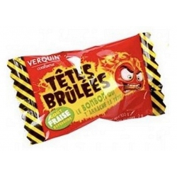 Le bonbon emballé qui t'explose la tête !! Têtes brûlées, la référence des bonbons acidulés ! Bonbon emballé extra acidulé qui déchire tout !