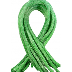 Ces câbles réglisse sont de couleur verte, au goût acidulé de pomme, et mesurent 70 cm de longueur. Ils sont fabriqués en France avec des ingrédients de qualité, conformes aux normes CE en vigueur.