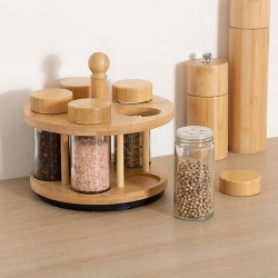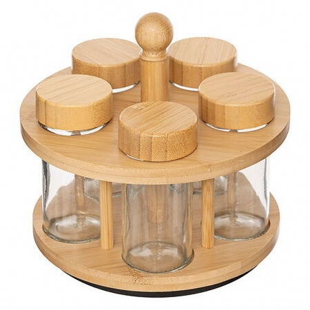 RACK 5 POT A EPICES BOIS ET VERRE ET SUPPORT BAMBOU
