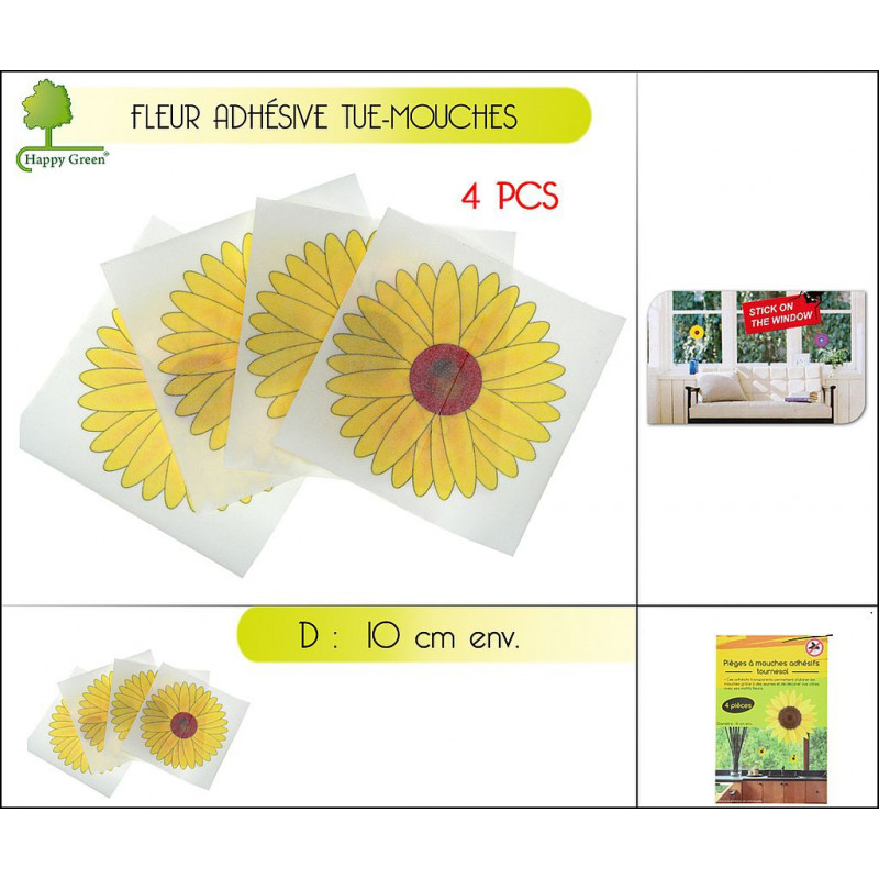 4 PIEGES A MOUCHES ADHESIFS FORME TOURNESOL