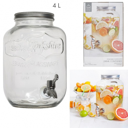 Cette fontaine à boisson en verre séduira toute la famille ! Elle offre une large ouverture au sommet qui facilitera la tâche au moment de la préparation de vos boissons. Chacun pourra se servir en toute tranquillité grâce au robinet de service prévu à cet effet ! Cette fontaine sera idéale pour tous vos déjeuners sur l'herbe ou autres évènements festifs.