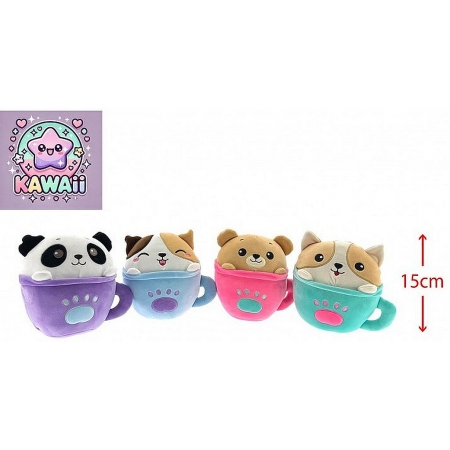 PELUCHE ANIMAL TASSE KAWAII 15 CM