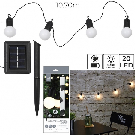 GUIRLANDE SOLAIRE AMPOULES BLANCHES 20 LEDS