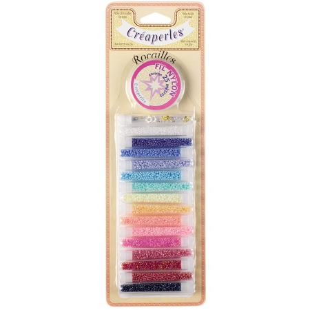 Coffret de 15 tubes de perles rocailles et rouleau de 25 mètre de fil nylon